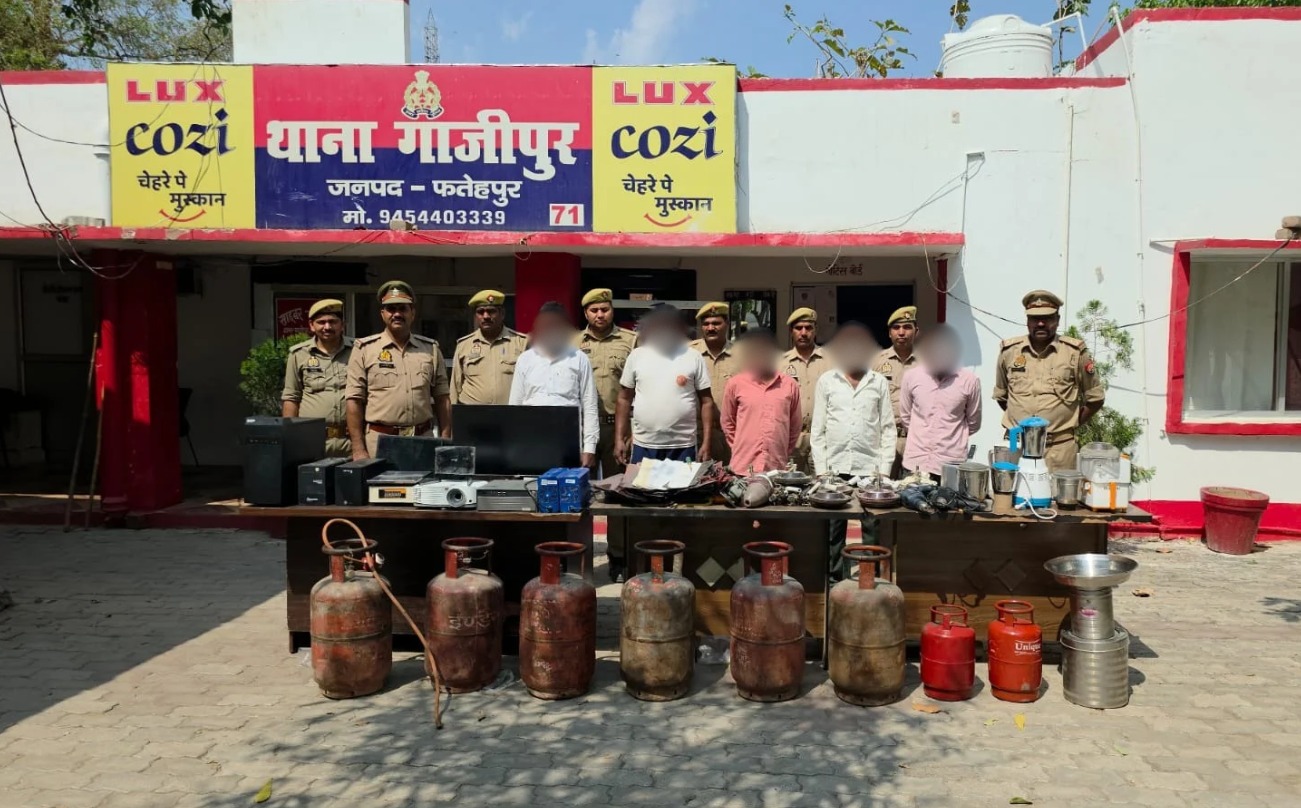 पुलिस के अनुसार 20 मार्च 2026 की रात कंपोजिट विद्यालय सोनबरसा बहुआ में अज्ञात चोरों ने ताला तोड़कर कार्यालय और कमरों से कंप्यूटर सिस्टम व रसोई का सामान चोरी कर लिया था। इस मामले में थाना गाजीपुर में मुकदमा दर्ज किया गया था। इसके बाद 30 मार्च 2026 को उसी विद्यालय में फिर चोरी की घटना सामने आई, जिससे पुलिस हरकत में आई और मामले की गहन जांच शुरू की गई। पुलिस अधीक्षक अभिमन्यु मांगलिक के निर्देशन में चलाए जा रहे अभियान के तहत पुलिस उपाधीक्षक के नेतृत्व में टीम ने मुखबिर की सूचना पर 1 अप्रैल 2026 को कोतवाली क्षेत्र के शांतिनगर मोहल्ले में छापा मारा। यहां किराए के मकान में चोरी का सामान बांट रहे पांच आरोपियों को मौके से गिरफ्तार कर लिया गया। गिरफ्तार आरोपियों में राकेश विश्वकर्मा, अरविंद कुमार, वीरेन्द्र कुमार लोधी, सुरेश कुमार लोधी और गुलाम रसूल शामिल हैं। सभी आरोपियों के कब्जे से चोरी का सामान बरामद हुआ है। पूछताछ में आरोपियों ने बताया कि वे गांवों से दूर स्थित स्कूलों को निशाना बनाते थे। रात में स्कूलों का ताला तोड़कर सिलेंडर, कंप्यूटर, पंखे और बर्तन आदि चोरी कर लेते थे और बाद में आधे दाम में बेच देते थे। इसी पैसे से वे अपना और अपने परिवार का खर्च चलाते थे। गिरोह ने जिले के अन्य थाना क्षेत्रों राधानगर, थरियांव, कल्याणपुर, हुसेनगंज और बिंदकी में भी कई स्कूलों में चोरी की वारदात कबूल की है। पुलिस ने सभी आरोपियों के खिलाफ संबंधित धाराओं में मुकदमा दर्ज कर न्यायालय भेज दिया है और गिरोह से जुड़े अन्य सदस्यों की तलाश शुरू कर दी है।