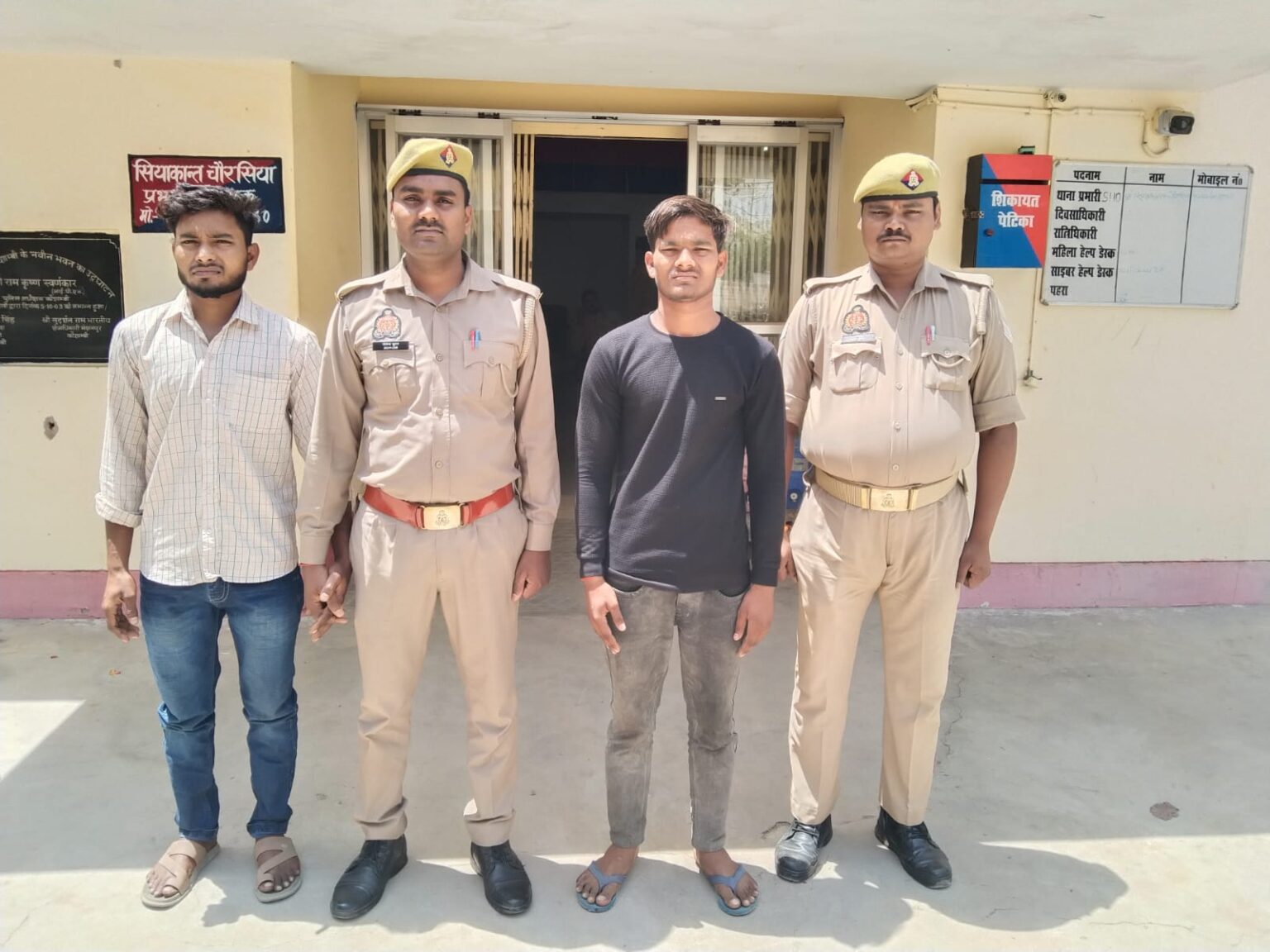 कौशाम्बी : भारत यादव हत्याकांड में पुलिस की बड़ी कार्रवाई, हत्याकांड में शामिल दो इनामी आरोपी गिरफ्तार, आरोपी आकाश पांडेय और अंकित पांडेय गिरफ्तार, मुख्य आरोपी अशोक पांडेय पहले भेजा जा चुका है जेल, प्रेम विवाह के विरोध में हुई थी भारत यादव की हत्या, करारी थाना क्षेत्र के अड़हरा गांव की घटना।