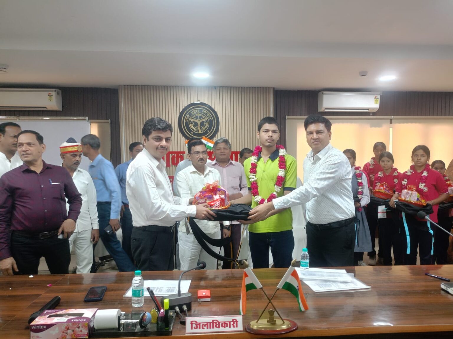 बाराबंकी, 29 अप्रैल 2026-माध्यमिक शिक्षा परिषद उत्तर प्रदेश द्वारा आयोजित हाईस्कूल एवं इंटरमीडिएट परीक्षा-2026 में प्रदेश स्तर पर उत्कृष्ट स्थान प्राप्त करने वाले छात्र-छात्राओं को बुधवार को कलेक्ट्रेट स्थित लोक सभागार में आयोजित प्रतिभा सम्मान समारोह में सम्मानित किया गया। कार्यक्रम में जिलाधिकारी ईशान प्रताप सिंह ने मेधावी विद्यार्थियों को उपहार प्रदान कर उनका उत्साहवर्धन किया। इस अवसर पर हाईस्कूल एवं इंटरमीडिएट वर्ग के प्रदेश स्तरीय रैंक प्राप्त छात्र-छात्राओं को सम्मानित किया गया।
