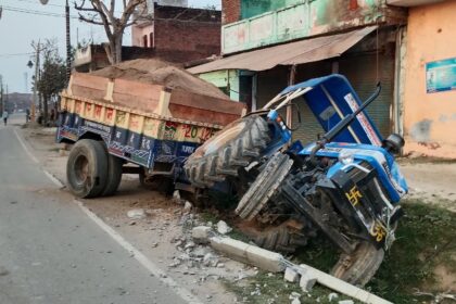 बड़ा हादसा: ओवरलोड मौरम लदे ट्रैक्टर ने 11,000 लाइन के खंभे को उखाड़ा, पलटा ट्रैक्टर असोथर नगर पंचायत पर पुत्तू बाबा के डेरा के पास